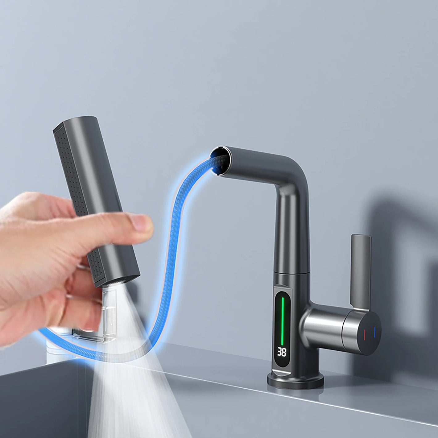 ברז מטבח נשלף שלושה מצבים, מסתובב 360 מעלות, עם צג.