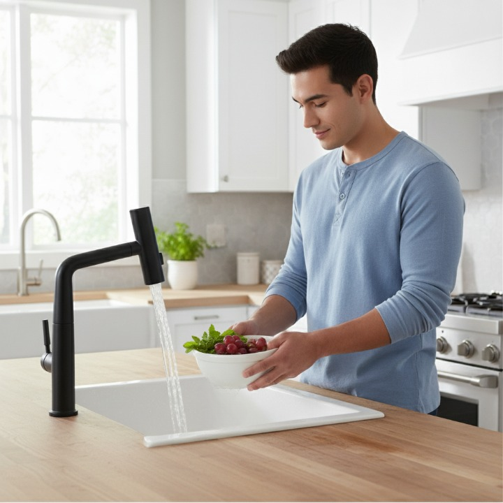 ברז זה מתרומם ומסתובב ב-360°, עוקב אחרי כל תנועה שלך כמו בן זוג לריקודים שלעולם לא דורך לך על הרגליים. שלוף אותו, סובב אותו, שטוף בקלות — זו גמישות שאתה יכול להרגיש.