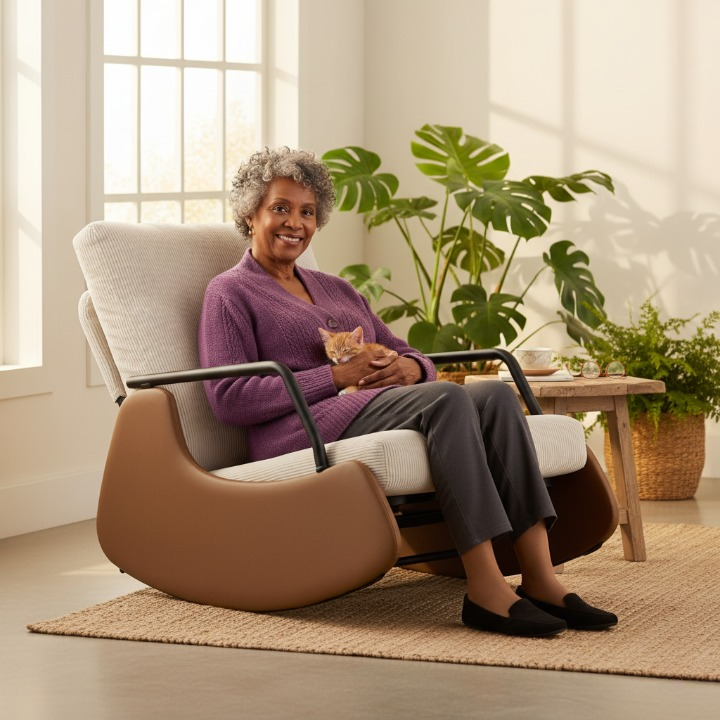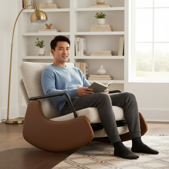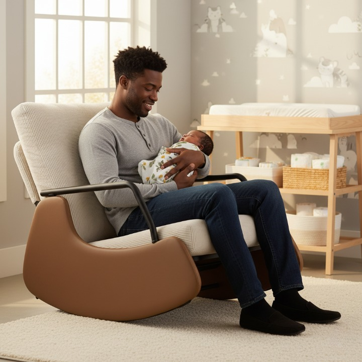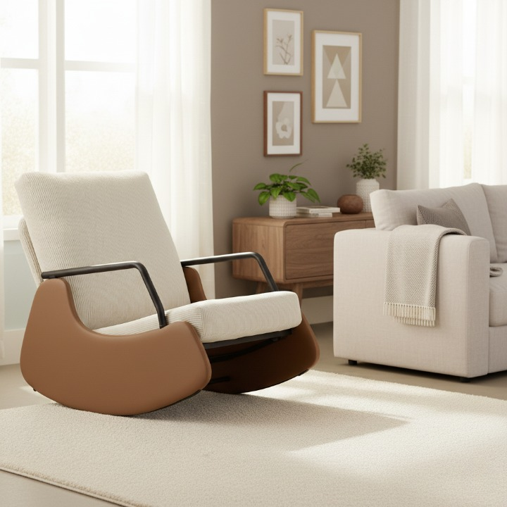 התאמת משענת גב מרובת זווית: התכונה של כסא נדנדה זה היא משענת גבוהה מעוצבת היטב כדי להבטיח חווית נוחות מירבית. העיצוב המתכוונן שלו מאפשר לך למצוא את הזווית המושלמת לטיפוח, קריאה או מנוחה, ומבטיח תמיכה מספקת ומושלמת לגב. בנוסף, עיצוב הדום הנשלף יכול להתאים את עצמו לתנוחות המנוחה השונות שלך, ולספק תמיכה מושלמת לרגליים.