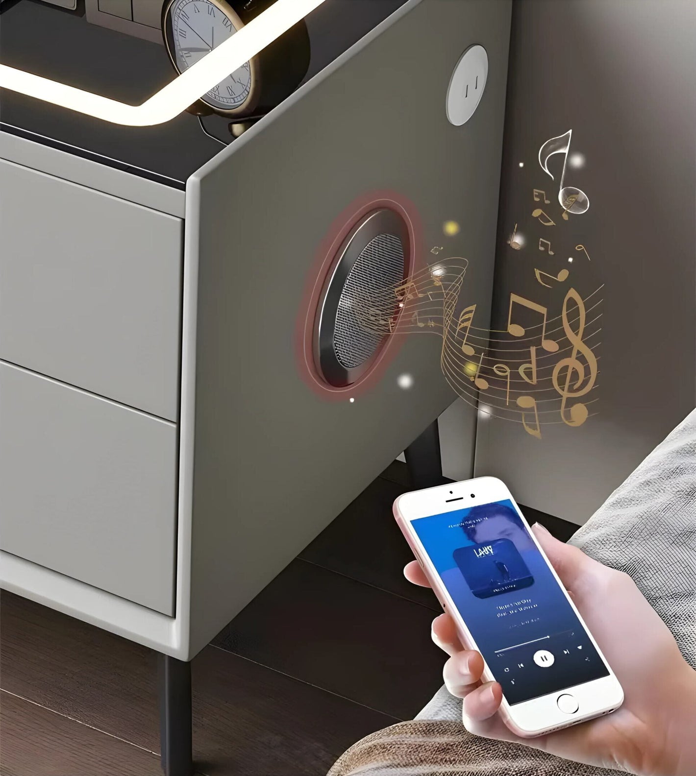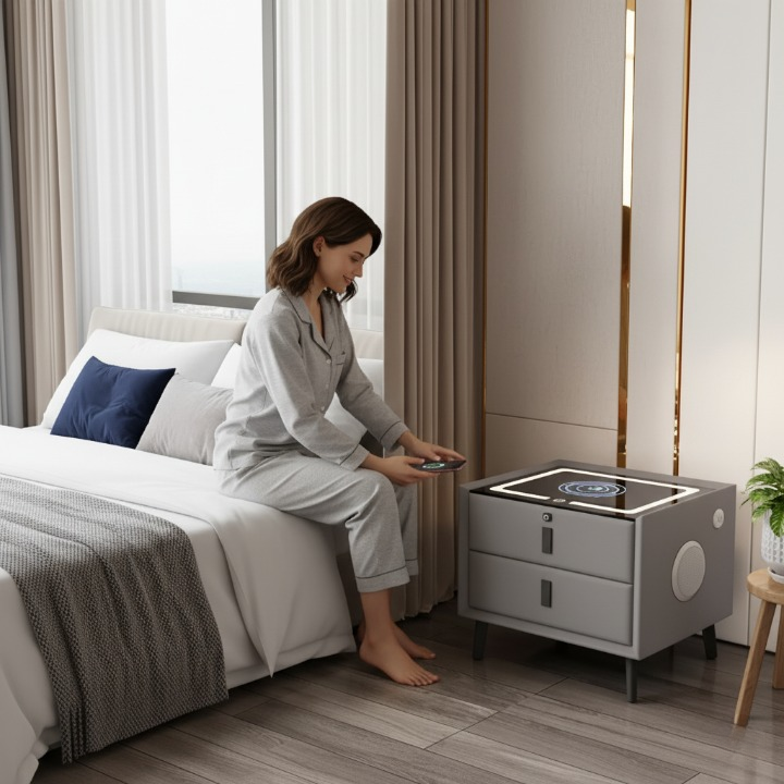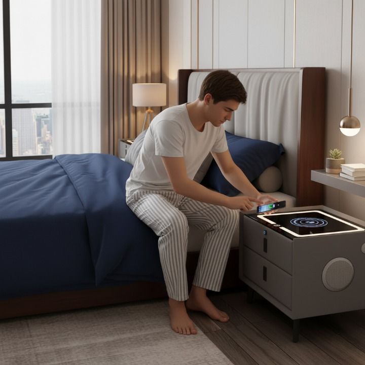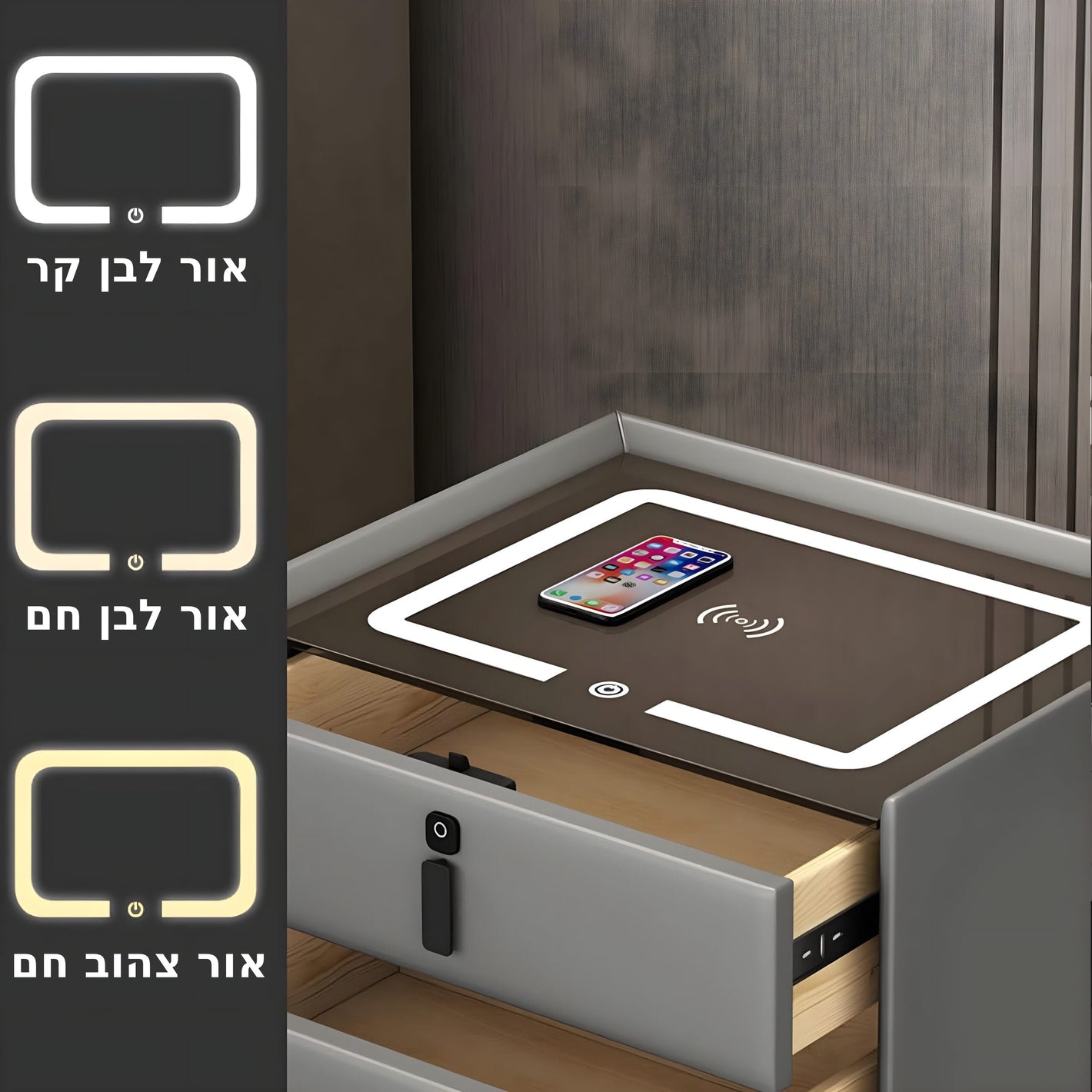 השידה החכמה היא תוצאה של המפגש בין עיצוב מודרני לנוחות יומיומית. זו לא סתם רהיט — זו העוזרת האישית החדשה שלך. משטח טעינה אלחוטי? מובנה. רמקול בלוטות'? מוכן לפעולה. נעילת טביעת אצבע? בטוחה ואמינה. תאורת LED? אווירה, מוכנה.
