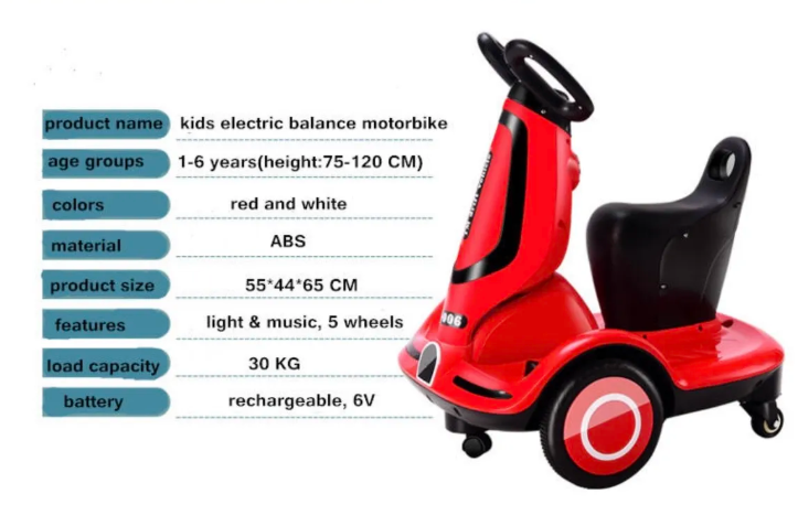 בימבה חשמלית לילדים עם שלט רחוק, מוזיקה, אורות בצבע לבן