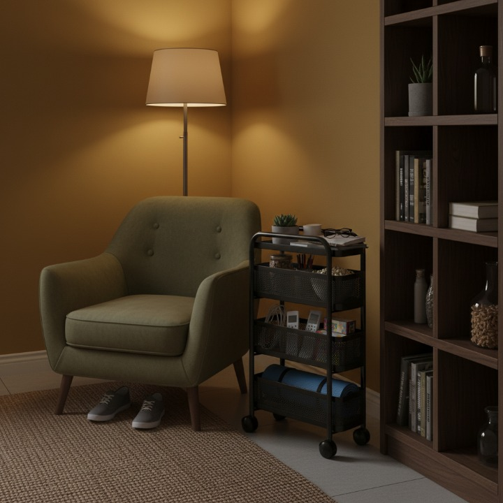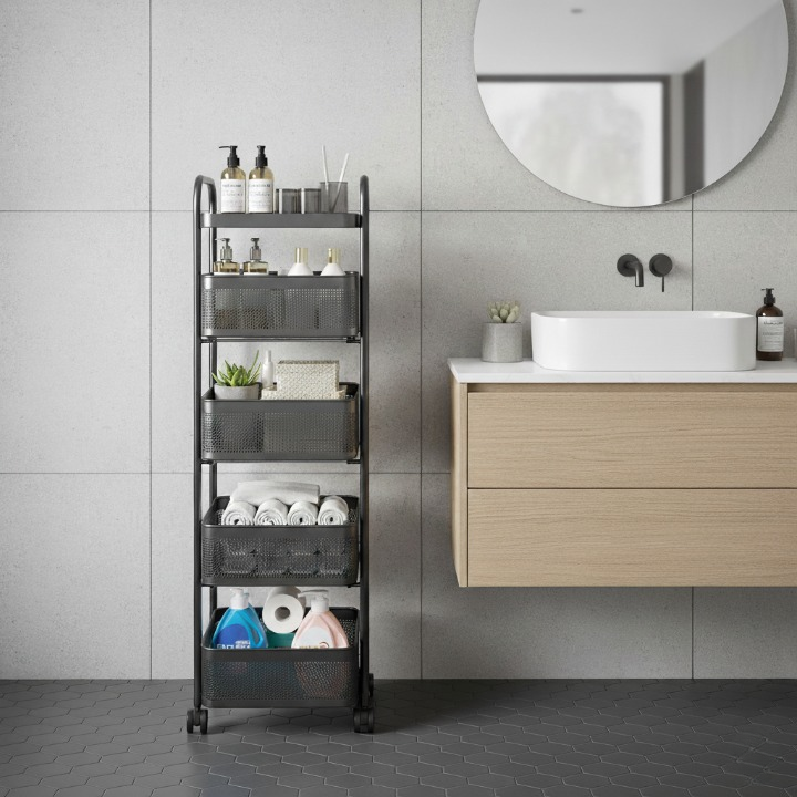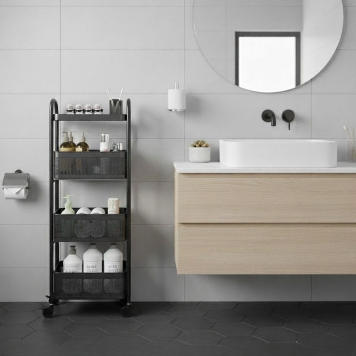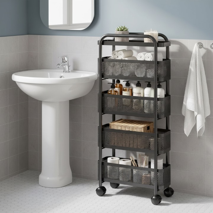 לא רציתי עוד ארגז אחסון מפלסטיק מגושם שיקלקל את האווירה בחדר האמבטיה שלי. העגלה הזו נראית מודרנית ואלגנטית — כאילו היא שייכת לשם. היא שומרת על האיפור והמוצרי טיפוח שלי מסודרים ונגישים מבלי לפגוע במראה החדר.
