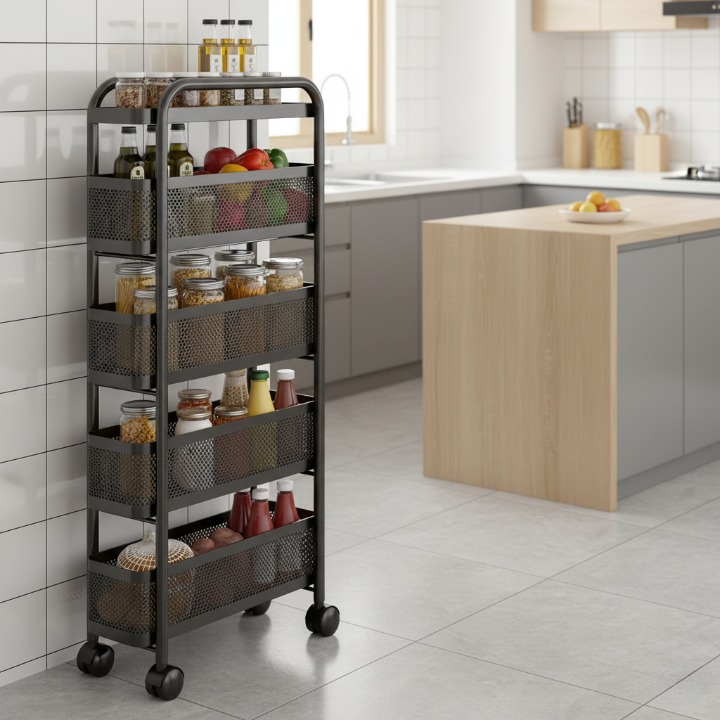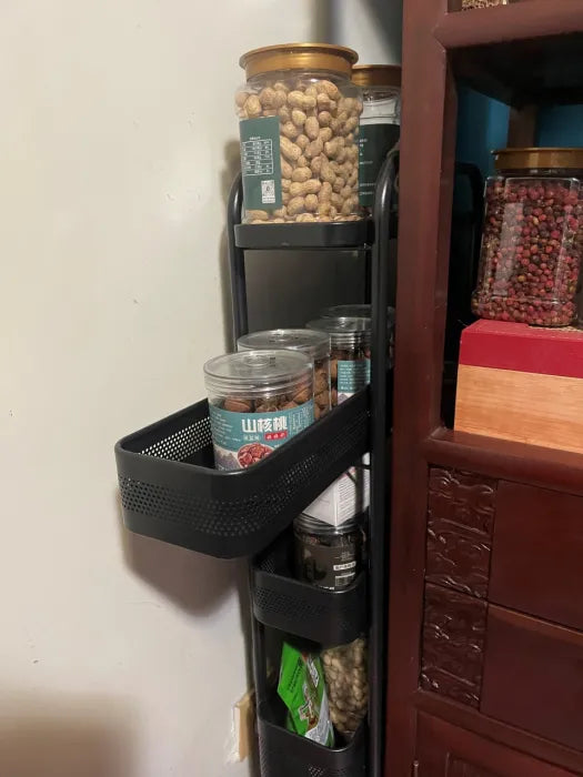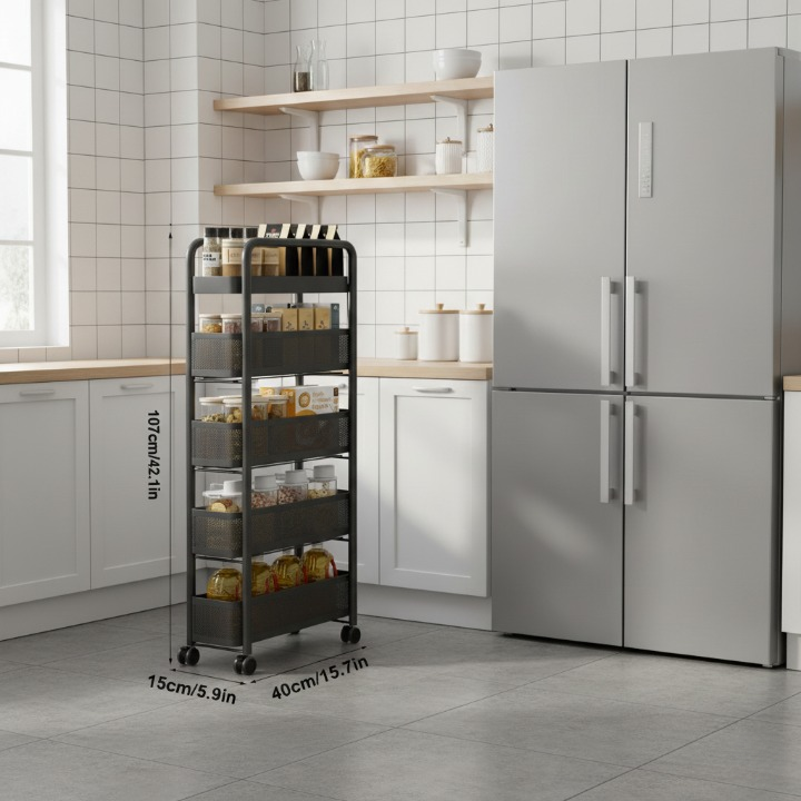 "היה לי רווח קטן בין המקרר לקיר שתמיד הפריע לי. שום דבר לא התאים לשם — עד שהגעתי לעגלה הזו! היא נכנסה לשם בצורה מושלמת וכעת היא מכילה את כל התבלינים והחטיפים שלי. זה מדהים איך משהו כל כך דק יכול להכיל כל כך הרבה. זה ממש משנה את כללי המשחק במטבחים קטנים!"
