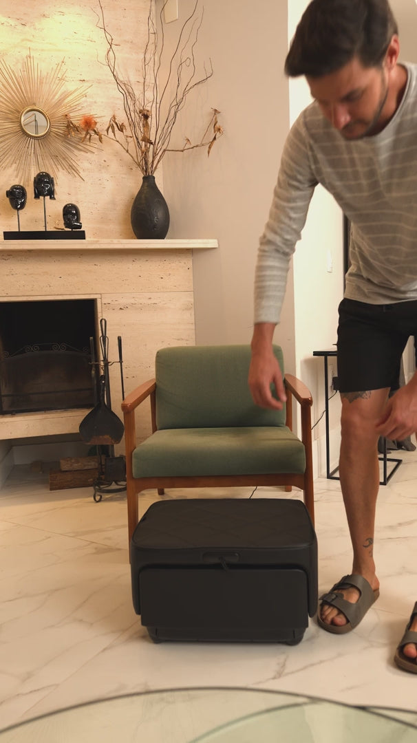 זה לא רק מכשיר לעיסוי כפות הרגליים — זה גם הדום מודרני שנראה נהדר בסלון שלכם. הסתירו את הספא שלכם לעין כל! השתמשו בו ככסא, כמשענת לרגליים או כאזור הרגעות אישי — בלי מכונות מגושמות שמקלקלות את החלל שלכם.