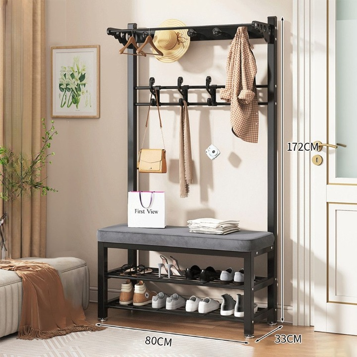 המתלה העליון מאפשר לתלות מעילים, צעיפים, כובעים או את הבגדים של מחר במקום אחד נוח. הוא מעוצב עם מסגרת פלדת פחמן חזקה, והוא יכול לשאת אפילו מעילים כבדים או מספר קולבים מבלי להתכופף.