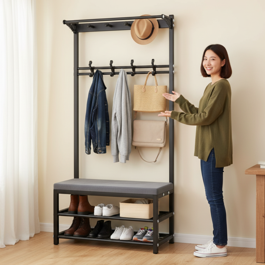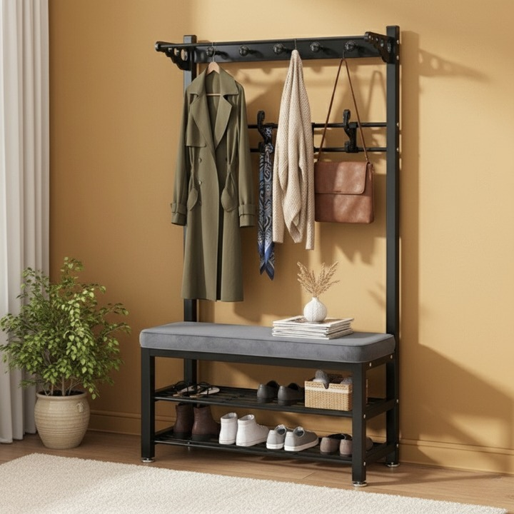 תלה את המעיל, התיק והעומס של היום — הכל בתנועה אחת.