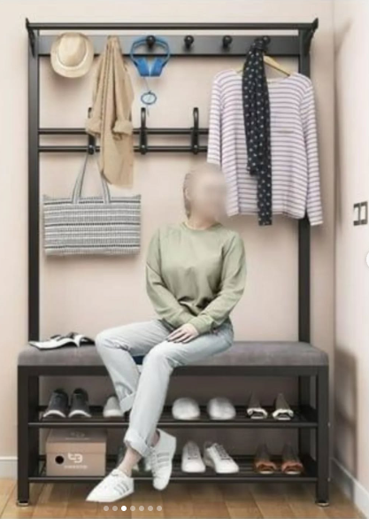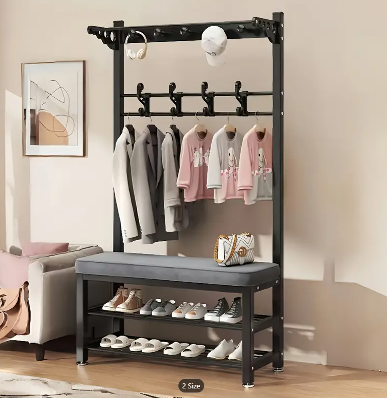 מתלה בגדים מעוצב 3 ב-1: פתרון מושלם לאחסון בגדים ונעליים! צבע שחור