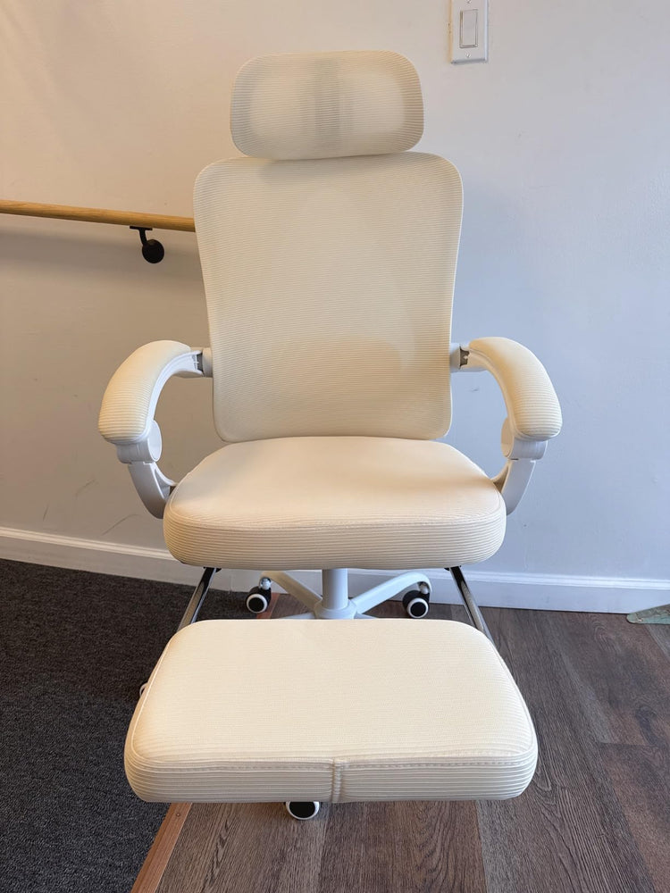 לא הבנתי עד כמה אני זקוק למדרגה לרגליים עד שניסיתי את הכיסא הזה. אני שולף אותה בהפסקות קצרות, נשען מעט לאחור, וזה מרגיש כמו תחנת טעינה מיניאטורית משלי. עכשיו האנרגיה שלי מספיקה לי לכל היום.