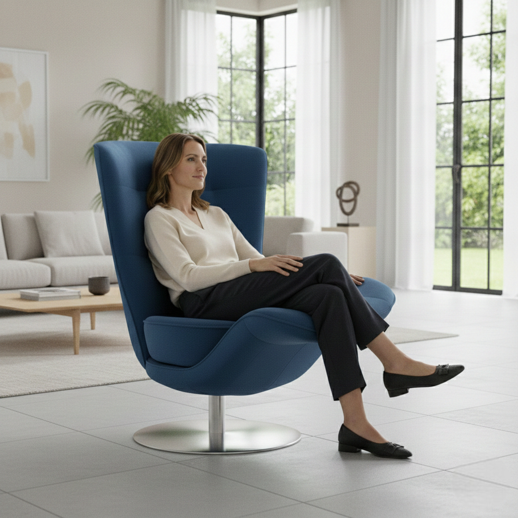 הצורה המעוקלת, התנוחה היציבה והתחושה העוטפת יוצרים אפקט "נשיפה" עדין — כאילו הגוף נרגע עוד לפני שהמוח מספיק להבין מה קורה.