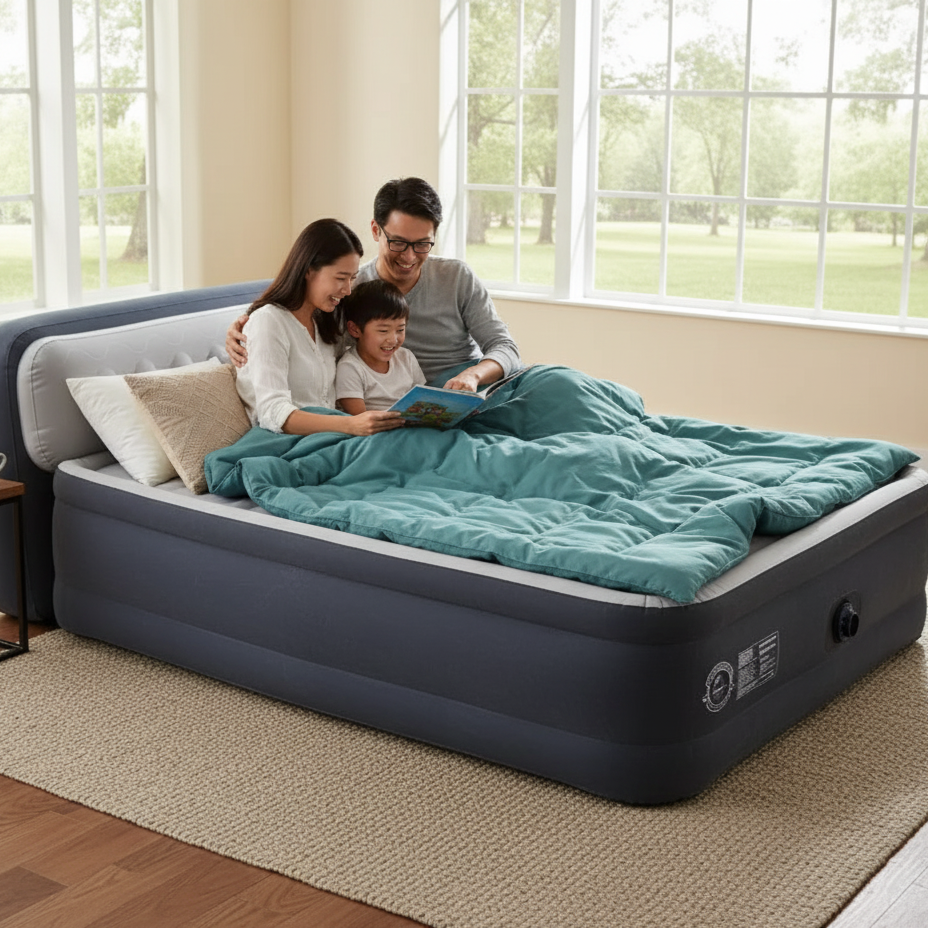 האם אי פעם ישנת על מזרן אוויר שהתרוקן לאט לאט עד שהתעוררת כשפניך נוגעות ברצפה? כן, כולנו היינו שם. לכן המזרן הזוגי המתנפח הזה מרגיש כמו מיטה אמיתית — רך, תומך ויציב מספיק אפילו לאנשים שישנים בצורה חסרת מנוחה.