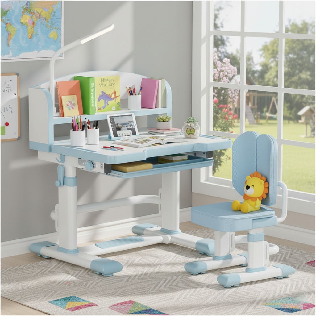 סט שולחן וכסא ארגונומיים הוא יותר מרהיט — הוא השקעה בנוחות, בביטחון ובסקרנות של ילדכם.