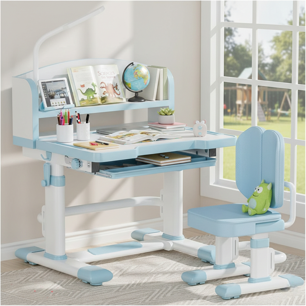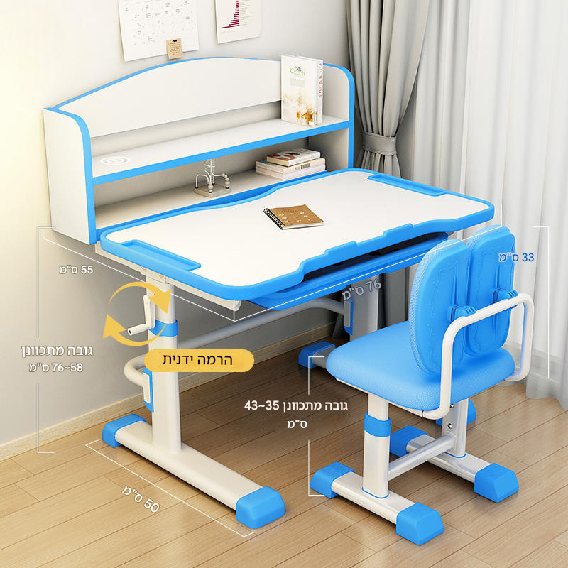 סט שולחן כתיבה וכיסא ארגונומי מתכוונן לגובה לילדים