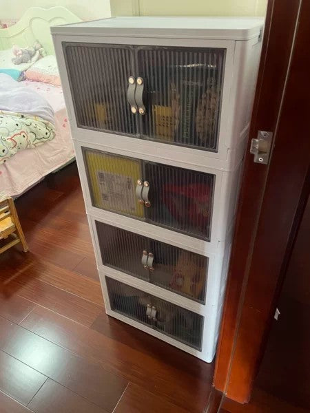 ללא צורך בהתקנה, עמיד, מתקפל ובעיצוב יפהפה — ארון האחסון עם מכסים ודלתות מעניק לכם בית נקי יותר ללא בלגן, כאוס או מאמץ.